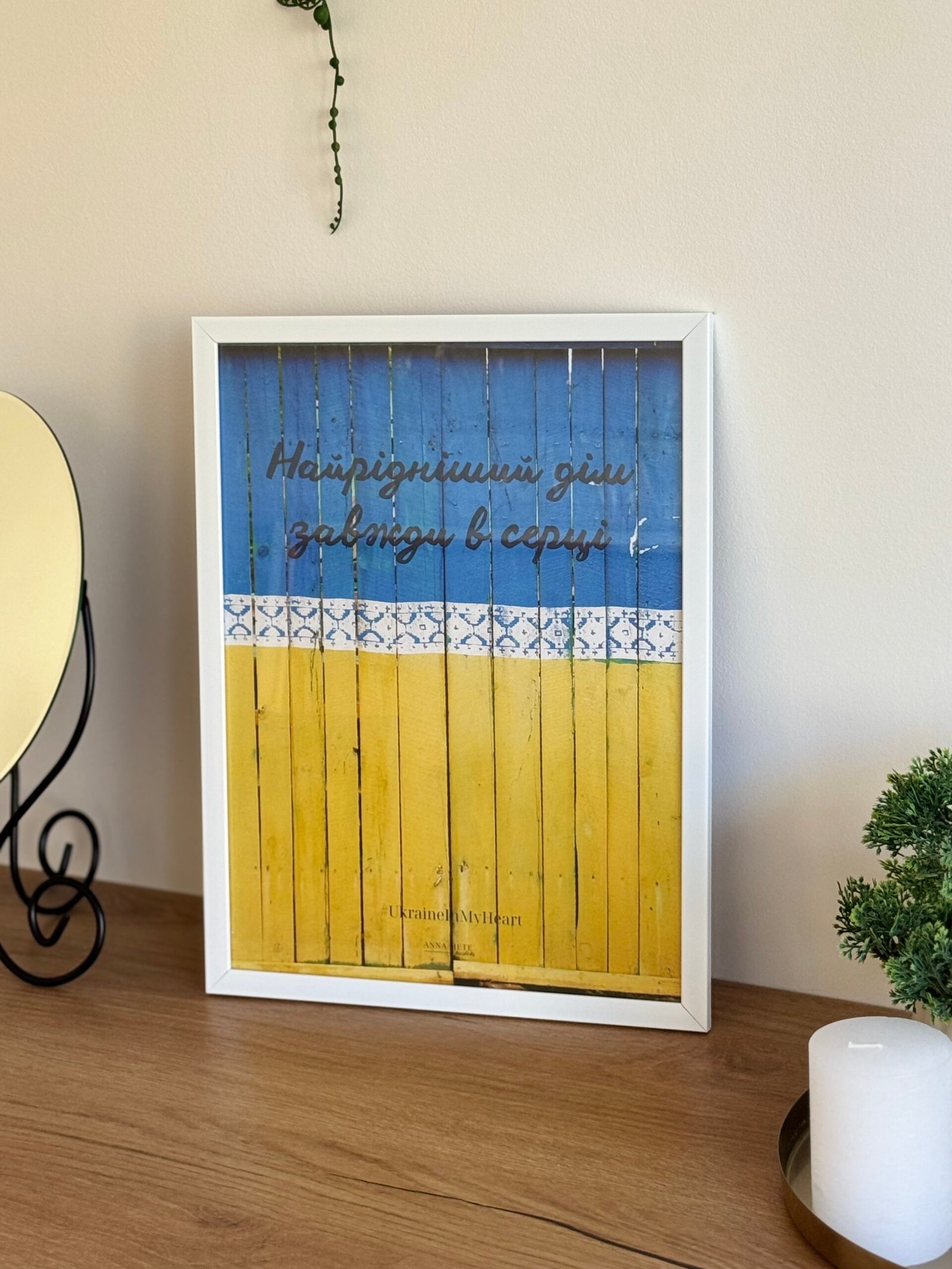 Постер “Найрідніший дім завжди в серці” — ніжне нагадування про любов до рідної землі, дому й людей, що живуть тут.
